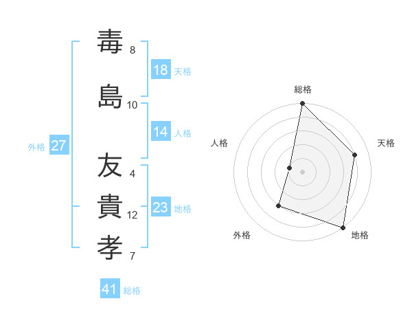 毒島 友貴孝さんの総格は41画の5点!