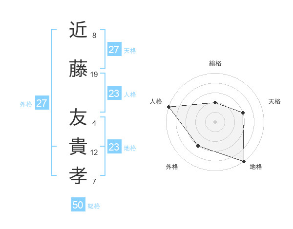 近藤 友貴孝さんを姓名の画数から五運を鑑定