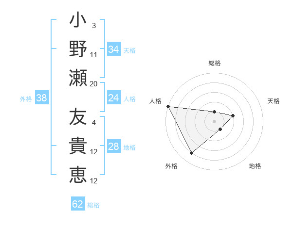 小野瀬 友貴恵さんの外格は38画の4点