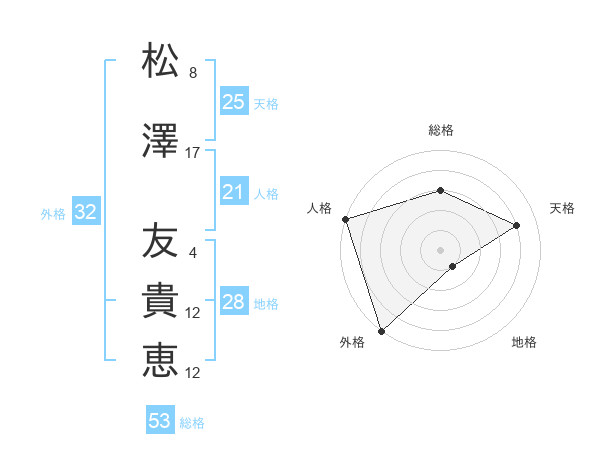 松澤 友貴恵さんを姓名の画数から五運を鑑定