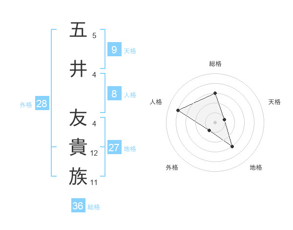 五井 友貴族さんを姓名の画数から五運を鑑定