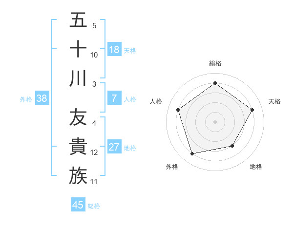 五十川 友貴族さんの総格は45画の4点!