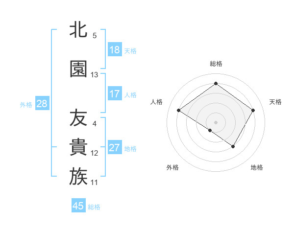 北園 友貴族さんの総格は45画の4点!