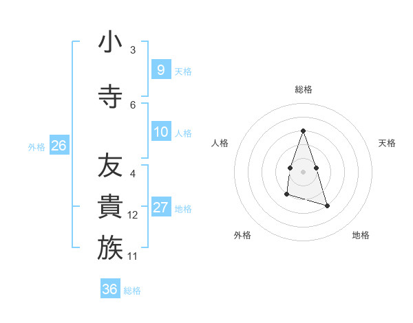 小寺 友貴族さんを姓名の画数から五運を鑑定