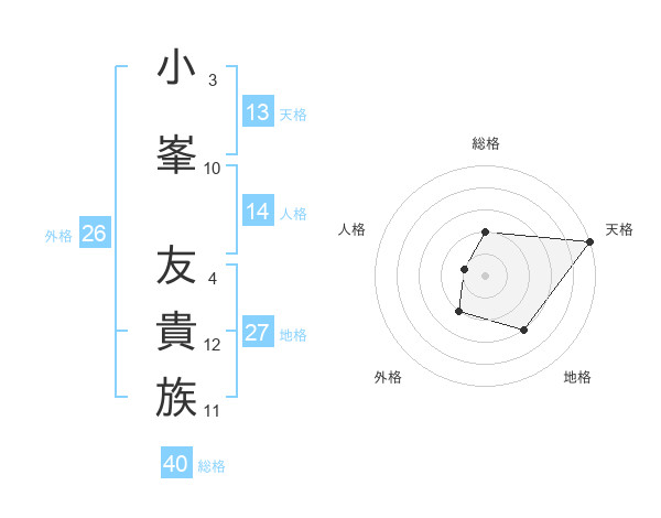 小峯 友貴族さんを姓名の画数から五運を鑑定