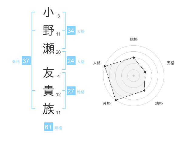 小野瀬 友貴族さんの総格は61画の3点!