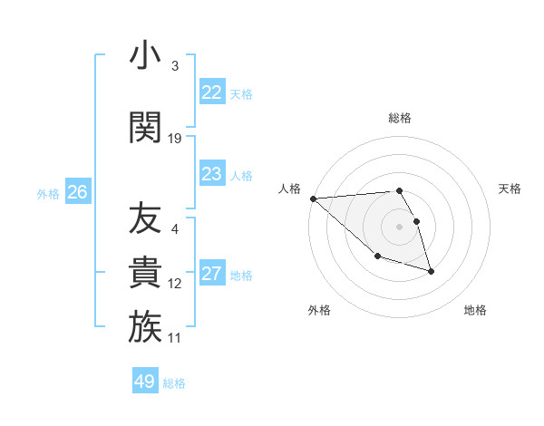 小関 友貴族さんの地格は27画の3点!