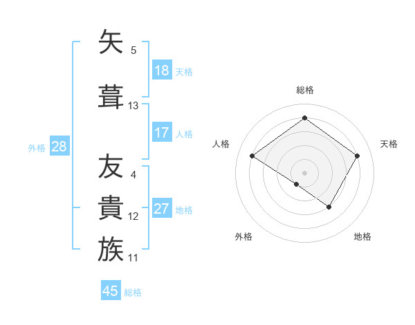 矢葺 友貴族さんを姓名の画数から五運を鑑定