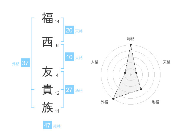 福西 友貴族さんの総格は47画の5点!