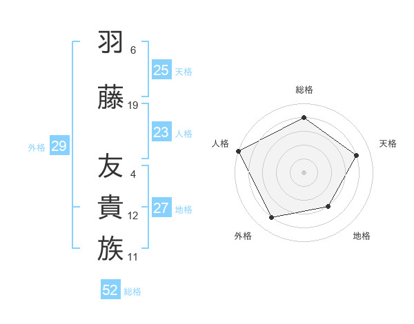 羽藤 友貴族さんを姓名の画数から五運を鑑定
