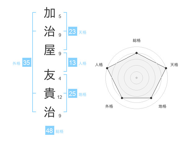 加治屋 友貴治さんの天格は23画の5点!