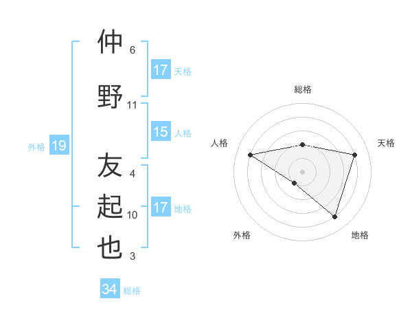 仲野 友起也さんを姓名の画数から五運を鑑定