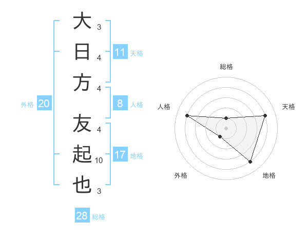 大日方 友起也さんを姓名の画数から五運を鑑定