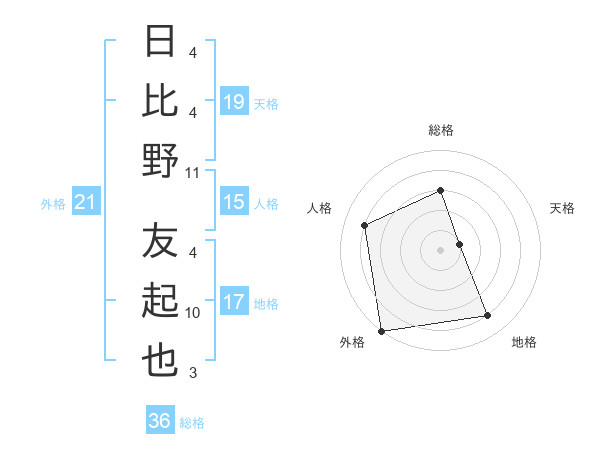 日比野 友起也さんの外格は21画の5点!