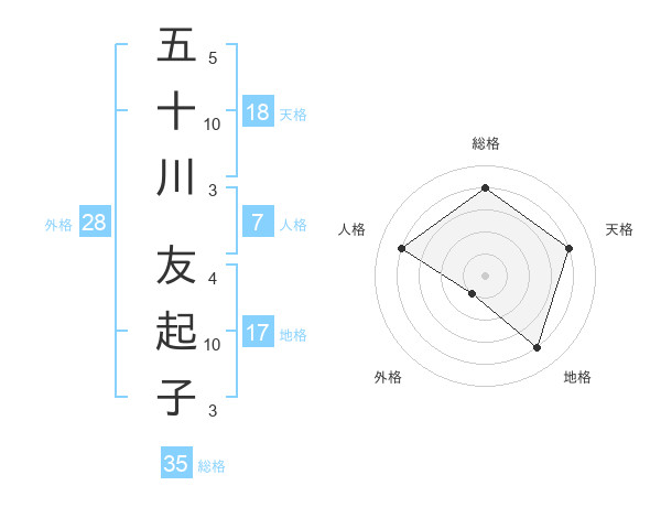 五十川 友起子さんを姓名の画数から五運を鑑定