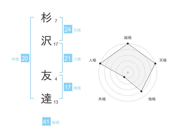 杉沢 友達さんを姓名の画数から五運を鑑定