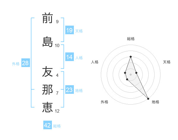 前島 友那恵さんを姓名の画数から五運を鑑定