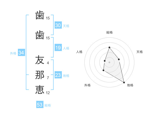 歯歯 友那恵さんを姓名の画数から五運を鑑定