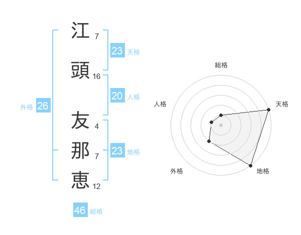 江頭 友那恵さんを姓名の画数から五運を鑑定