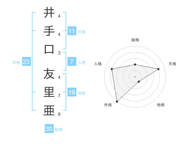 井手口 友里亜さんを姓名の画数から五運を鑑定