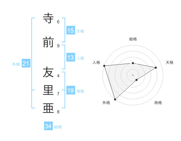 寺前 友里亜さんの外格は21画の5点!