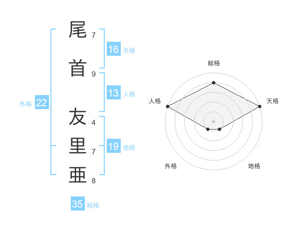 尾首 友里亜さんを姓名の画数から五運を鑑定