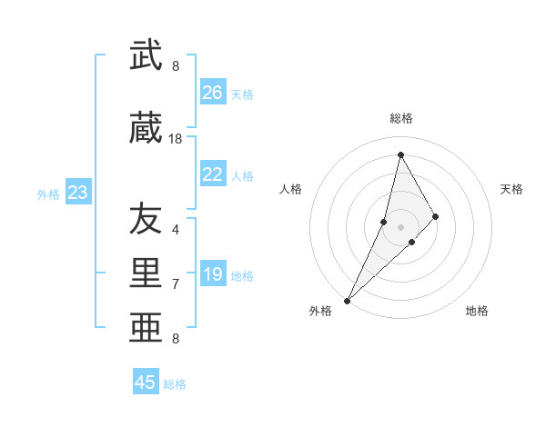 武蔵 友里亜さんを姓名の画数から五運を鑑定