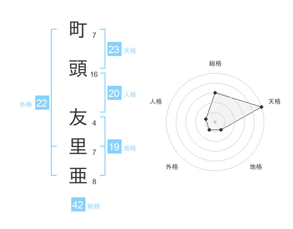 町頭 友里亜さんを姓名の画数から五運を鑑定