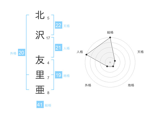 北沢 友里亜さんの人格は21画の5点!