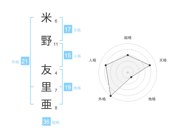 米野 友里亜さんを姓名の画数から五運を鑑定