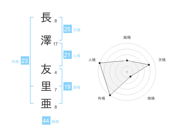 長澤 友里亜さんを姓名の画数から五運を鑑定