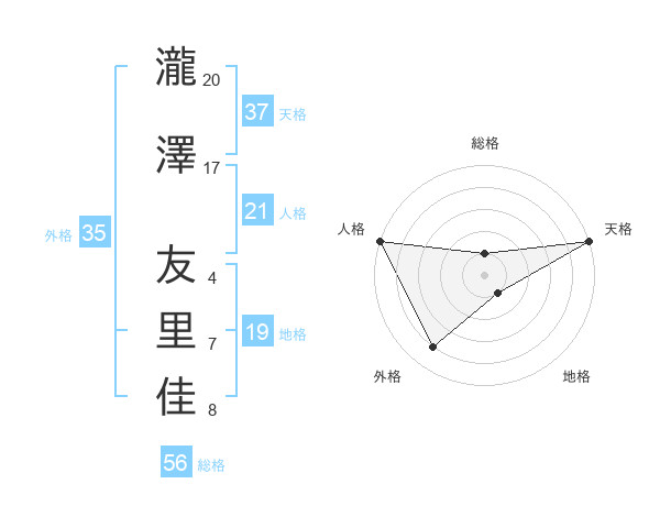 瀧澤 友里佳さんを姓名の画数から五運を鑑定