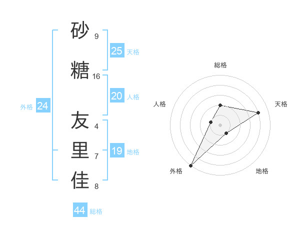 砂糖 友里佳さんを姓名の画数から五運を鑑定