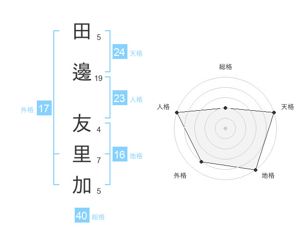 田邊 友里加さんを姓名の画数から五運を鑑定