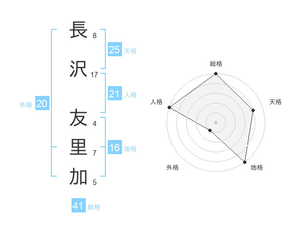 長沢 友里加さんを姓名の画数から五運を鑑定