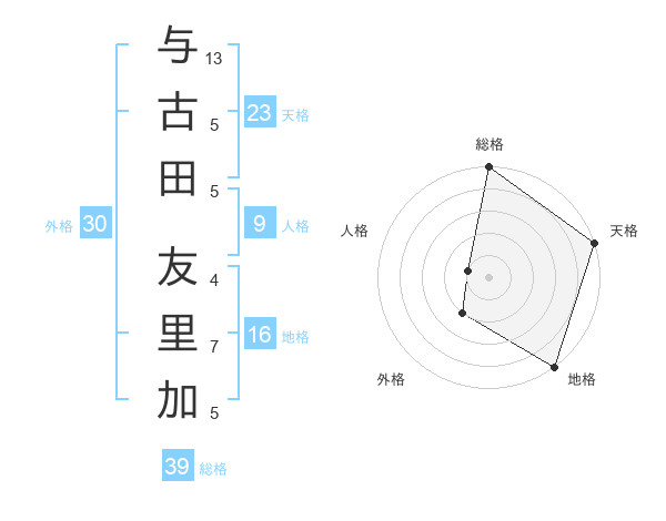 与古田 友里加さんを姓名の画数から五運を鑑定