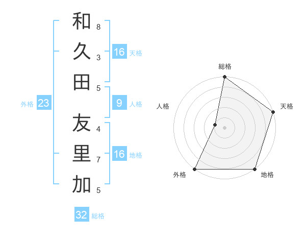 和久田 友里加さんの天格は16画の5点!