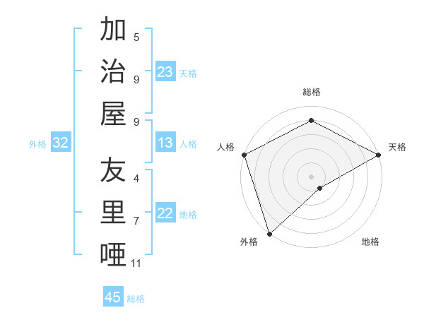 加治屋 友里唖さんを姓名の画数から五運を鑑定