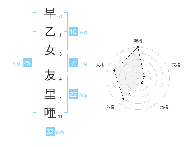 早乙女 友里唖さんを姓名の画数から五運を鑑定