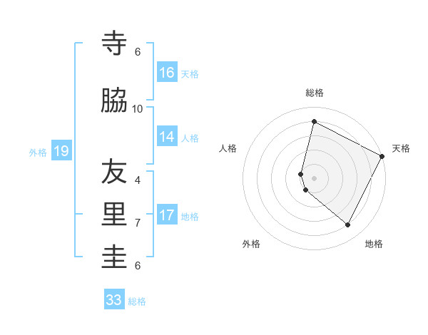寺脇 友里圭さんの天格は16画の5点!
