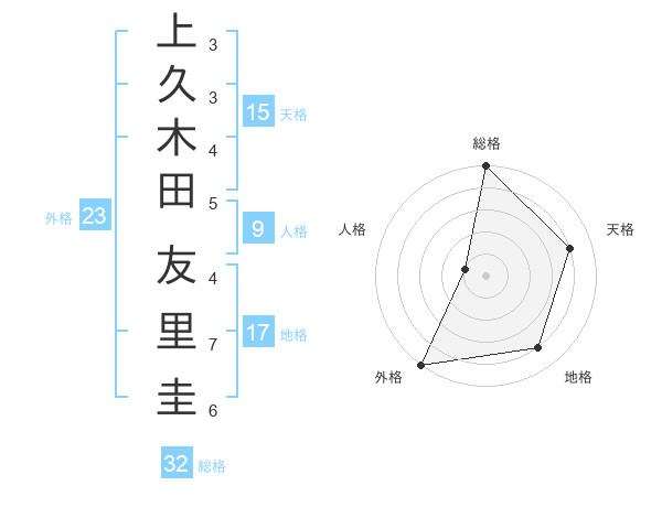 上久木田 友里圭さんを姓名の画数から五運を鑑定