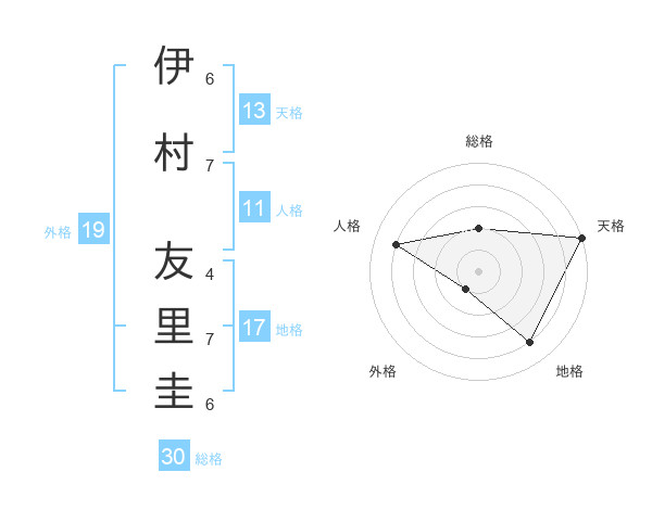 伊村 友里圭さんの天格は13画の5点!