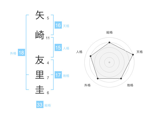 矢崎 友里圭さんを姓名の画数から五運を鑑定