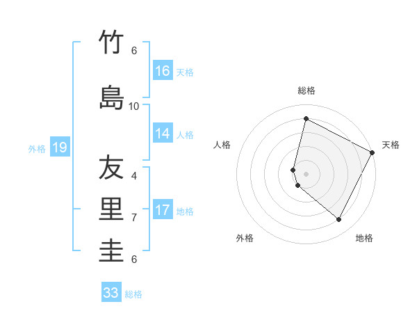 竹島 友里圭さんを姓名の画数から五運を鑑定
