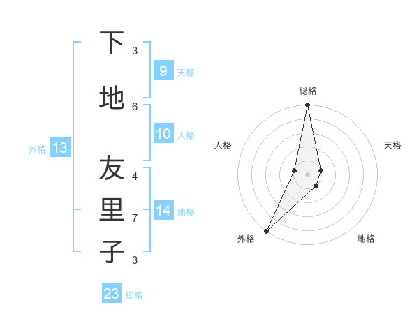 下地 友里子さんの総格は23画の5点