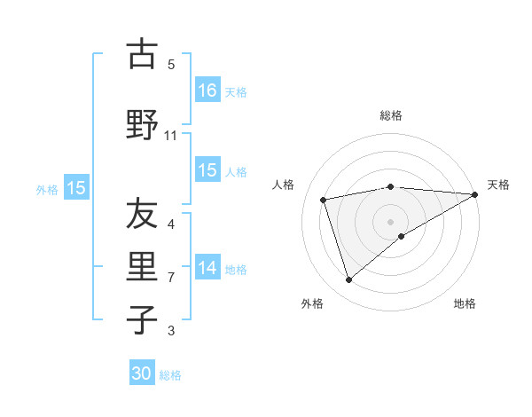 古野 友里子さんの総格は30画の2点!