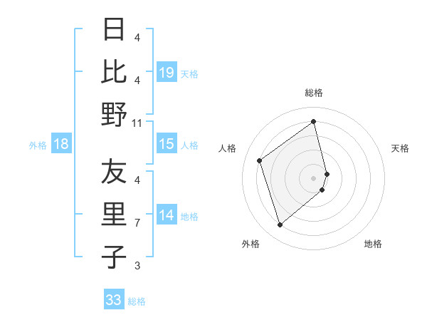 日比野 友里子さんを姓名の画数から五運を鑑定