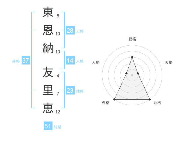 東恩納 友里恵さんを姓名の画数から五運を鑑定