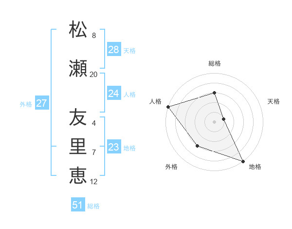 松瀬 友里恵さんの総格は51画の3点!