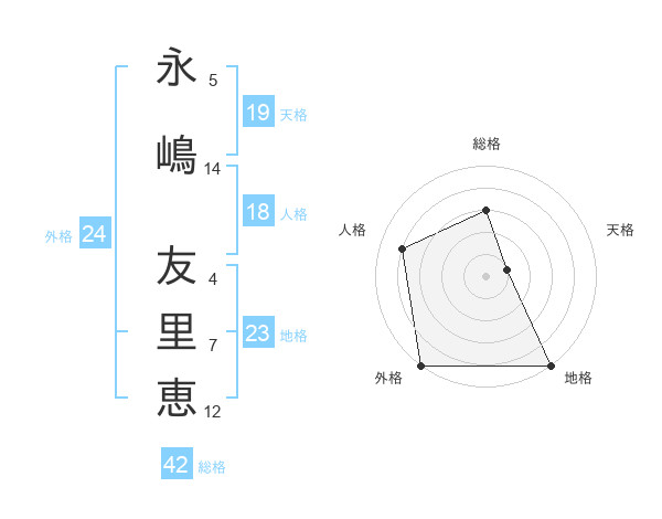永嶋 友里恵さんを姓名の画数から五運を鑑定